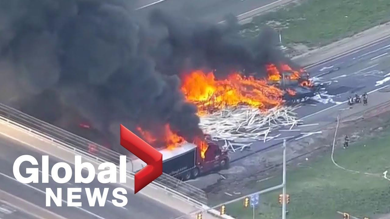 Article says that traffic was slow for a first crash involving a semi and school bus. All occupants were ok, then an out of control semi crashed behind the first crash into the slowed traffic causing that devastation.