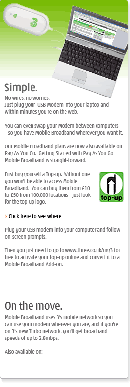 Where do I go from here? anyone had a 3 modem on Pay As You Go?