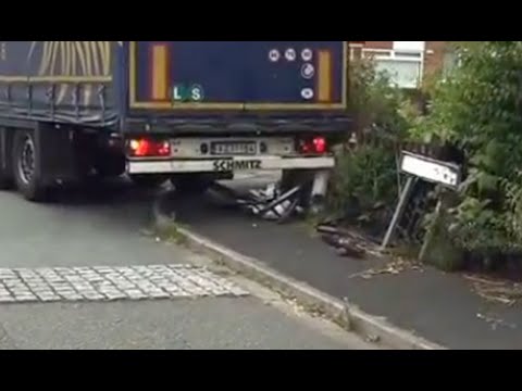 I’d doubt if a member of the public would have the skills needed to either deliberately put the truck into that situation or to help get it out.That’s what the driver is employed for.As I see it somehow having got the thing on the pavement on the offside he then seems to do the opposite of what’s needed in firstly getting the overhang away from the fence.IE he goes forward on the left lock which will just make matters worse and then backwards on the straight ahead lock.When firstly he needs to go backwards on full right lock to try to swing the overhang to the left and push the rest of the trailer to the right.Then try to straighten up the unit and reverse the trailer straight back after clearing the over hang.