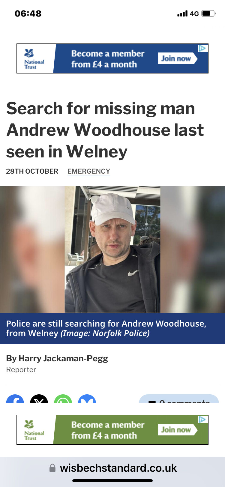 my girls partners brother has disappeared, gone for apx 10 days , police envolved ( even checked my girls attic etc , they’ve now found his car abandoned in the fens , no sign of him .obviously there’s nothing really in the fens other than water / flat land , so there all thinking the worst .