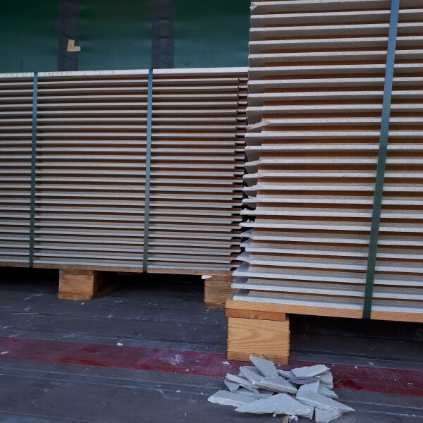 I guess the problem is the boards slide around and slip under each other? If using a telehandler, maybe they could tap them to the side slightly then very gently just get under the pallet and drag it backwards?
