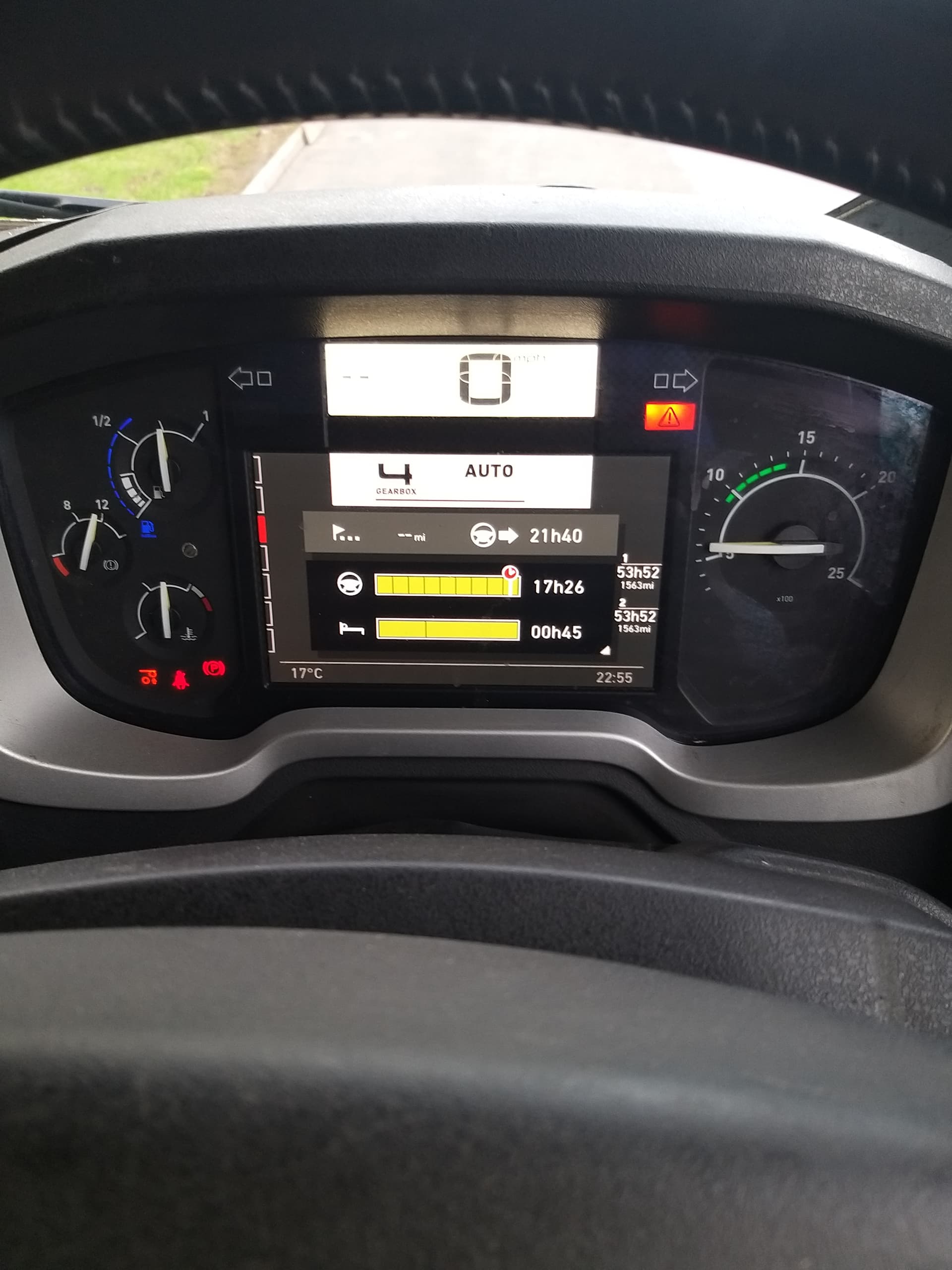 Got to yestrrday aftetnoon about 1600 dash warning telling me I’d done 17 hours driving (assume total of 2 days) and that my time was up.