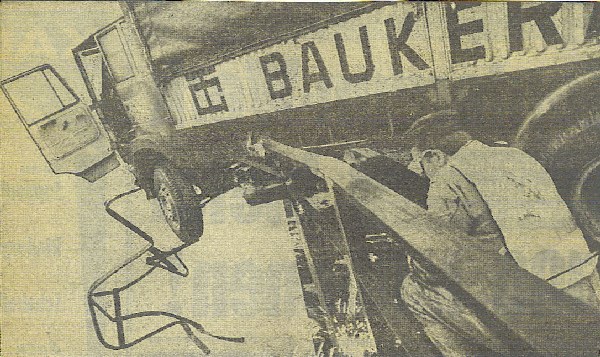 An Ambulance soon came and whisked me off to Ashford hospital. after a few stitches I was released and Bob Paul took me back to the scene of the accident where I saw what was left of my old girl.