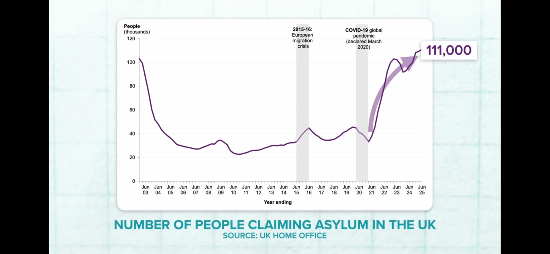 That line on the graph is for people who CAME HERE LEGALLY ON WORK OR STUDY VISAS arriving at an airport not a dinghy and THEN CLAIMED ASYLUM ONCE THEY WERE ALREADY HERE