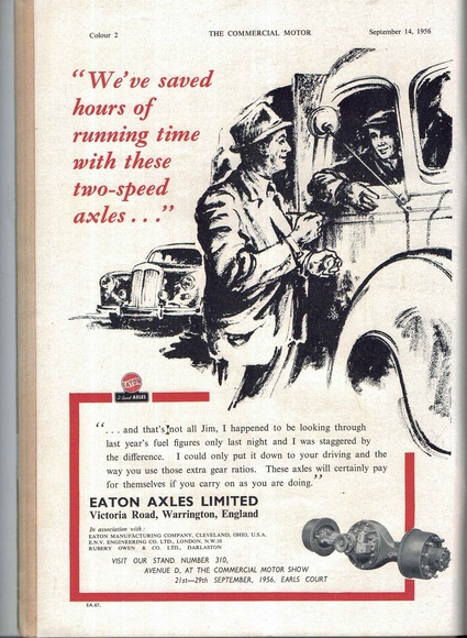 Well I never had problems with the good old Eaton two speed axles, I was taught how to use them by a lad who worked for Baxters on the Newcastle Quayside in the 50s, The late Jimmy Lawson, When operating the two speed shift you had to keep the throttle down to the floor, Then just lift your foot and bingo it changed into the gear that you had selected, These two speed axles gave a much improved fuel performance when driving a four wheeler Atki/Erf Etc with a four potter Gardner Engine, 4 LK 4 LW Range they used to run on fresh air in those good old days when fuel was very cheap. Regards Larry.