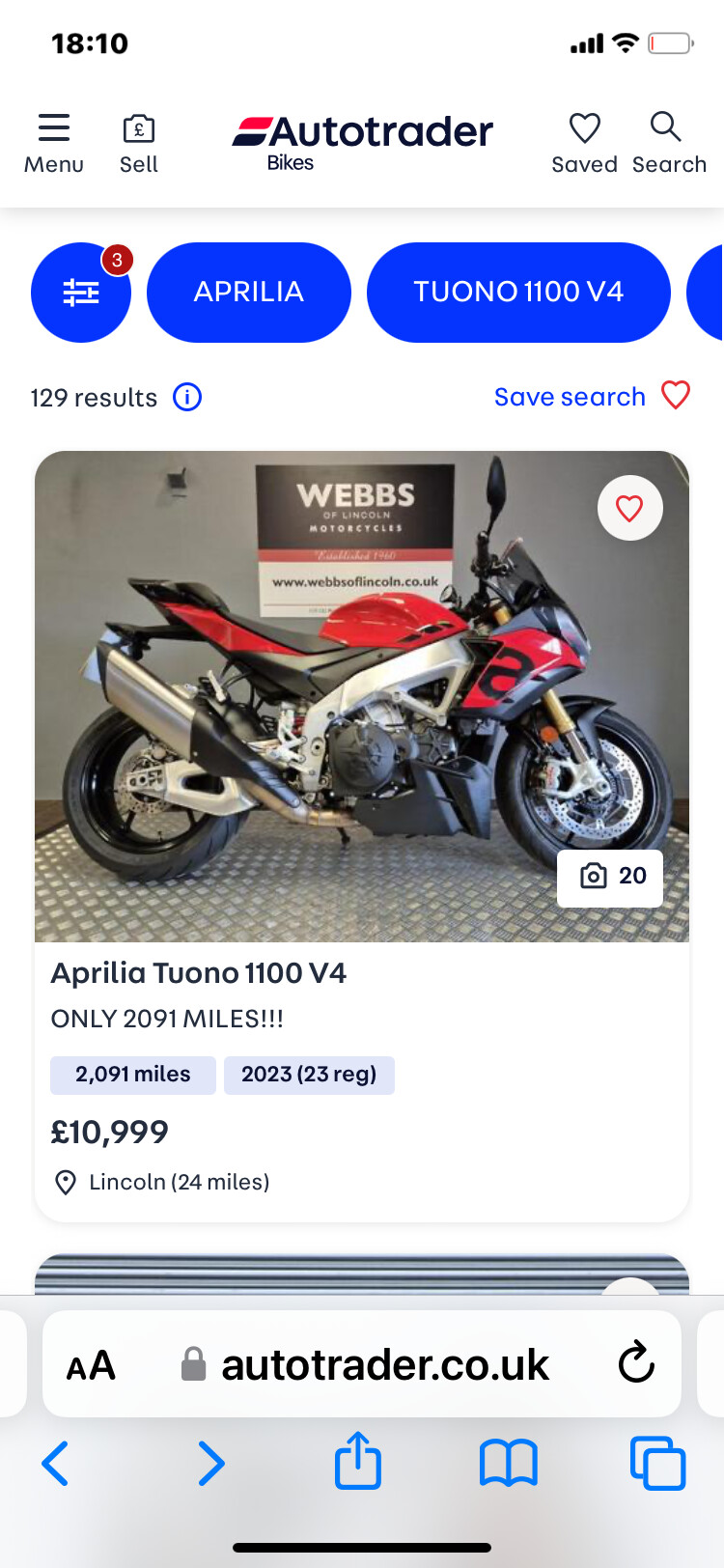 So this will be last roll of dice , wife has ok it ( she likes Aprilia colours) , so I’m changing before next years season starts ( but she has said last bike ) to one of these tuono,s