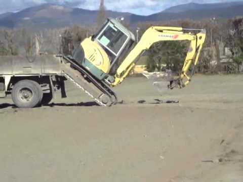 Other way around getting the mini to site is to pick it up and load it with the crane with a set of slings or chains. Securing it is the tricky part but it could be an option.
