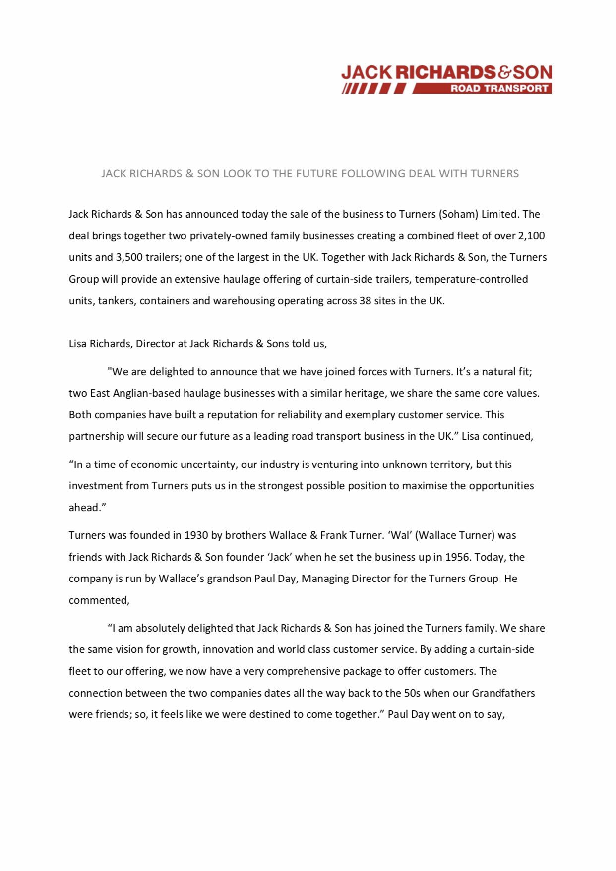 Consensus seems to be they will carry on as Jack Richard’s for the time being but nobody happy about being part of Turners.