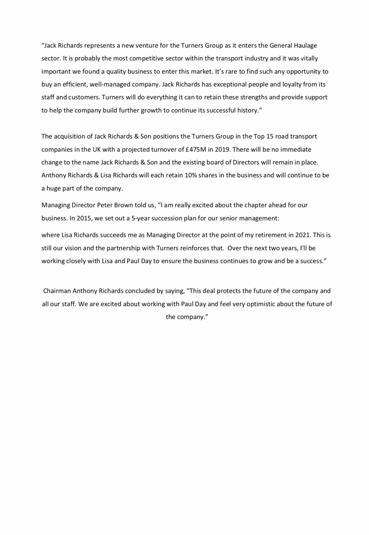 2 of the Richard family are still directors holding 10% each.